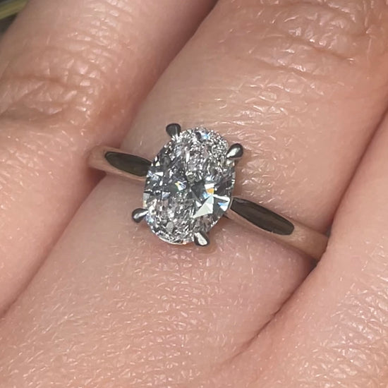 This bespoke piece features a 1ct D VVS2 oval-cut diamond set in platinum, held in a delicate four-prong setting for maximum brilliance. The clean, minimal silhouette highlights the purity and fire of the centre stone, offering timeless elegance with modern understatement.